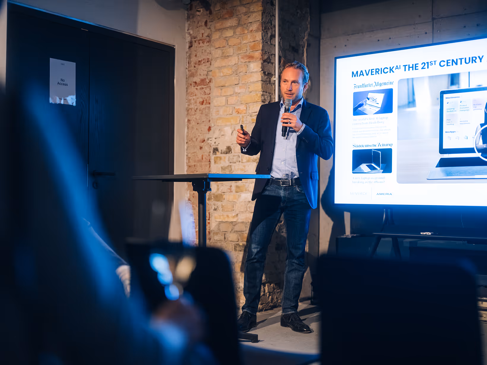 Discover the AI Device of the 21st century and how it redefines human-machine-interaction. Developed and designed in Germany, MAVERICKAI offers an independent European alternative to the solutions offered by the major US companies. Sony is convinced. Will you be too?
